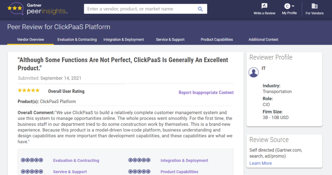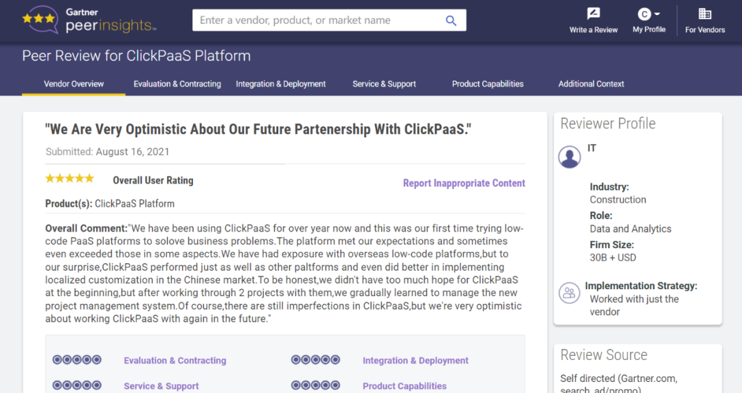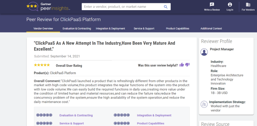 Tips:::【Peer Insights】——用户对企业IT产品和服务发布真实评价的平台。。目前已有355个市场,,,255,000条经过验证的评价。。。。每一条评价Gartner会针对参评企业营收规模及参评人员信息做验证、、、、评价内容做多维核实。。。。